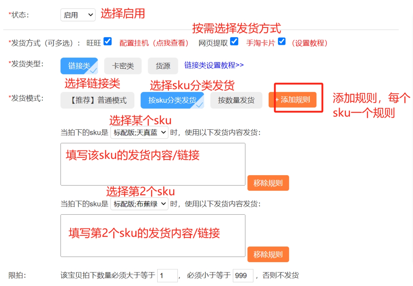 进入后台,点击左侧菜单“宝贝管理”,找到需要自动发货的宝贝,点击“修改”,按下图设置