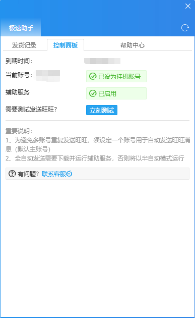 1、为避免多账号重复发送旺旺,须设定一个账号用于自动发送旺旺消息(默认主账号)