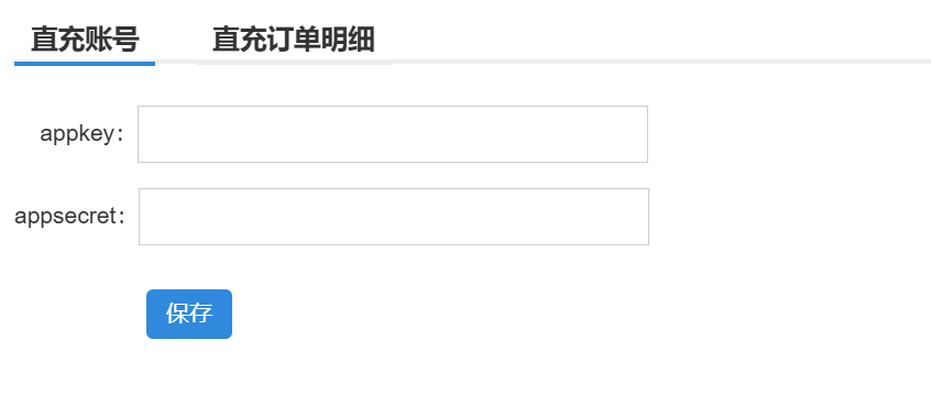 进入后台 -> 左侧菜单(淘宝/天猫直充) -> 填写上面截图的AppKey、AppSecret,保存