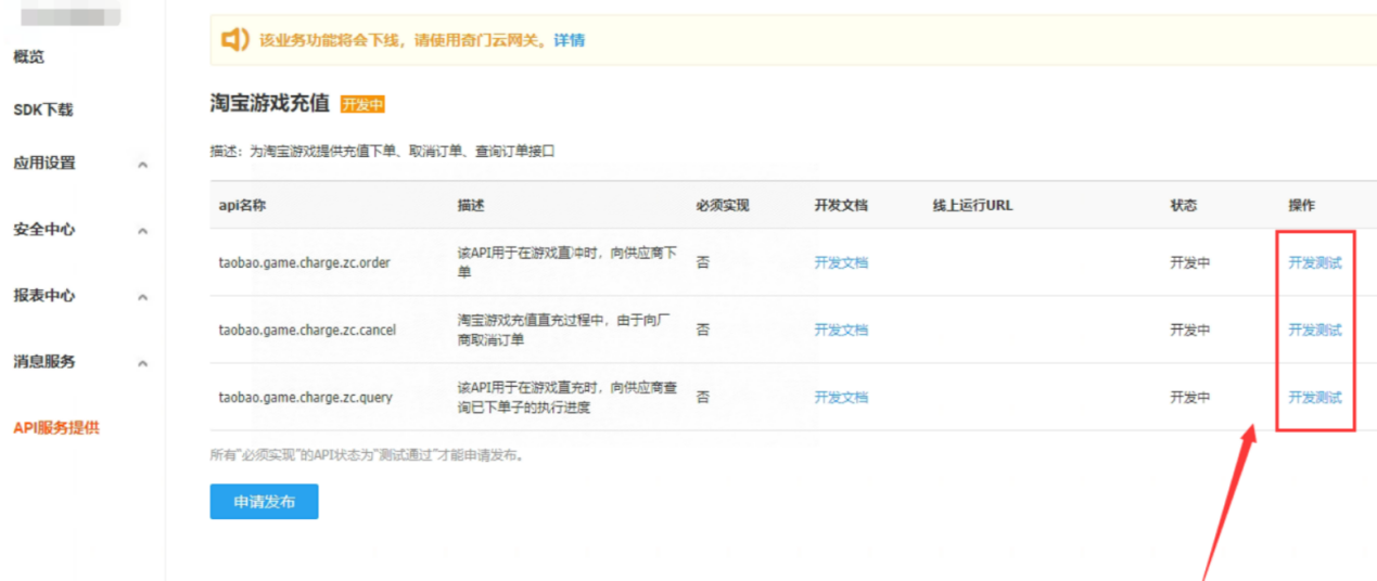 点击开发测试,进入页面